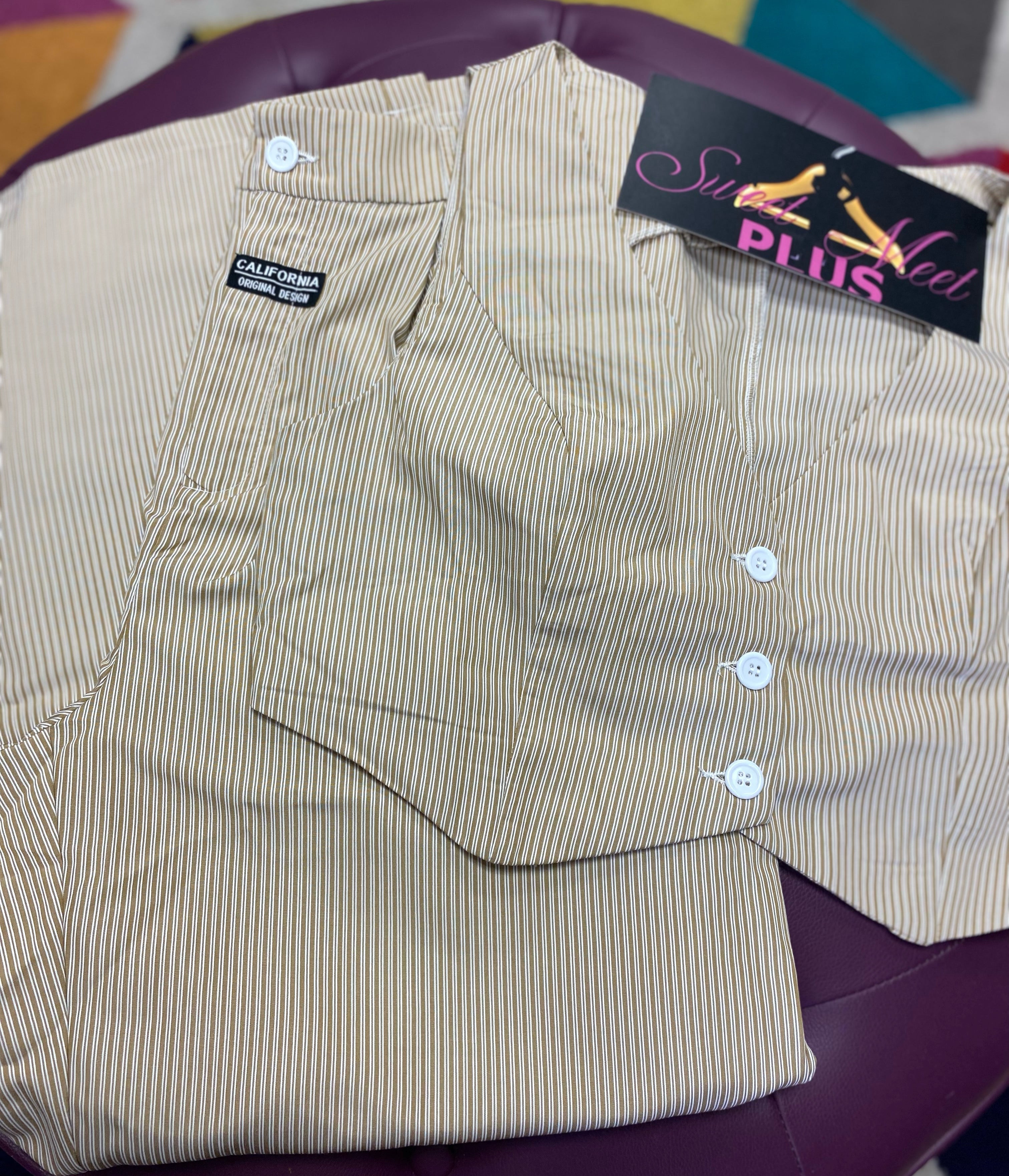 STRIPES VEST BUTTON UP STRIPES PANTS LITTLE STRTCH UNIQUE WEARING 3X